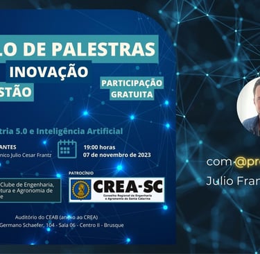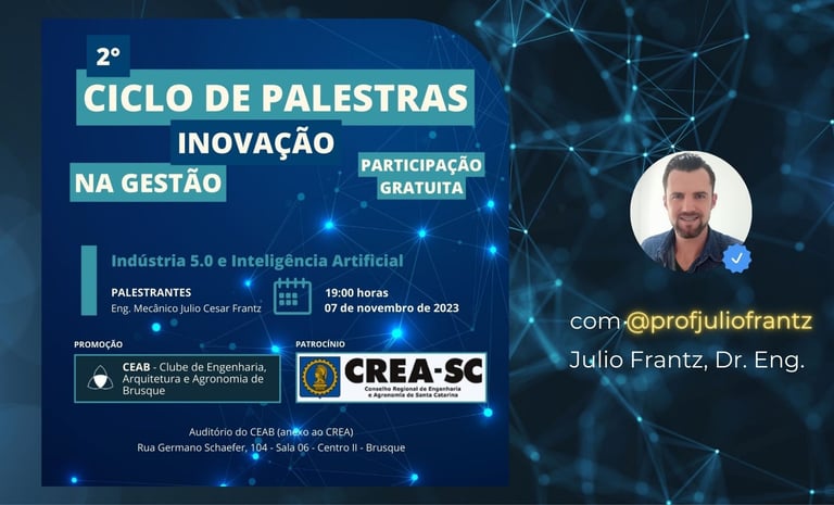 Minha palestra sobre transformação digital da indústria aborda o alinhamento conceitual da Indústria 4.0, apresentando diversos cases de tecnologias relacionadas. Além disso, exploro as expectativas para as novas revoluções industriais, como a Indústria 5.0 e 6.0.